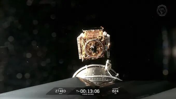 1月3日上午10時09分,SpaceX在加利福尼亞州范登堡太空軍基地用獵鷹9號火箭完成2026年首次發(fā)射。此次任務搭載的是意大利研制的1700公斤級軍民兩用地球觀測衛(wèi)星——第二代宇宙-地中海衛(wèi)星(CSG-FM3),該衛(wèi)星是近地軌道四顆部署衛(wèi)星中的第三顆。