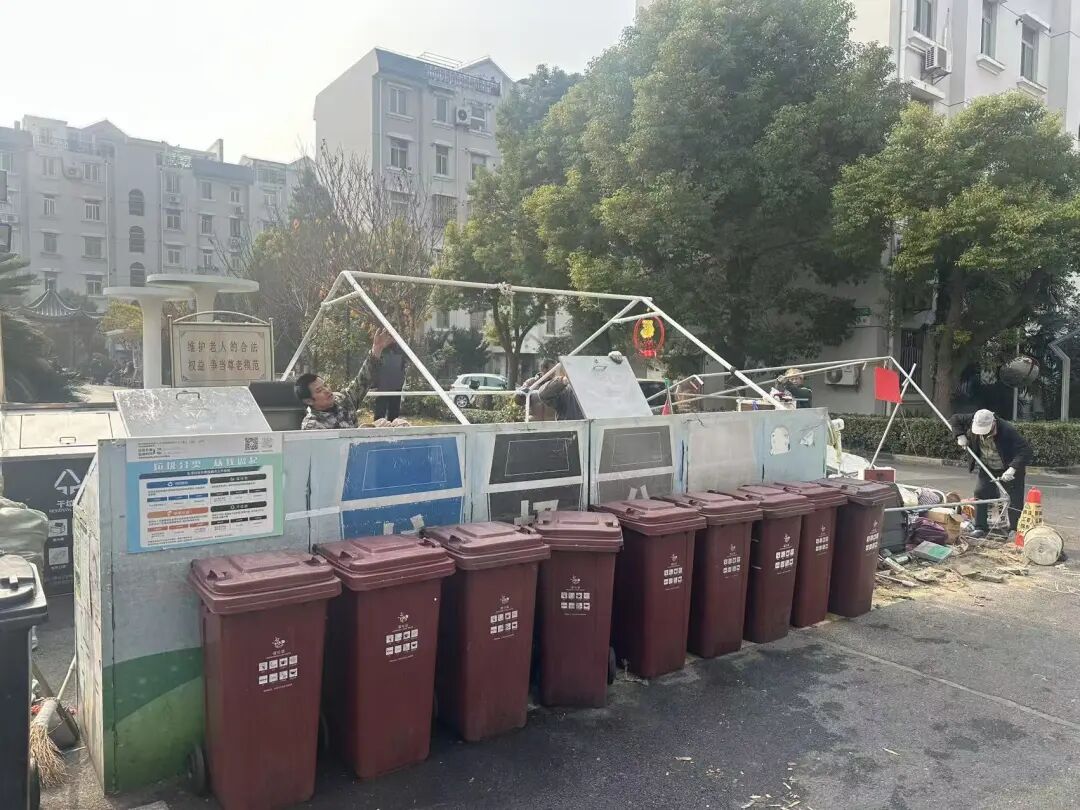 靜安區(qū)彭浦鎮(zhèn)白遺橋居民區(qū)永靈小區(qū)北門,曾因空間限制難以建設(shè)規(guī)范垃圾箱房,兩個破舊油布帳篷長期充當(dāng)臨時垃圾存放點,不僅外觀礙眼,夏季異味更是讓居民不敢開窗,成為社區(qū)環(huán)境與居民生活的“堵點”。面對居民的迫切改善需求,居民區(qū)黨總支牽頭“三駕馬車”協(xié)同發(fā)力,成功拆除帳篷并為桶具找到規(guī)范存放空間,老舊垃圾點實現(xiàn)環(huán)境逆襲,小區(qū)入口重歸整潔。