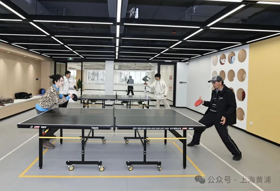 踏入約1200平方米的敞亮空間,陳先生和同事先在跑步機(jī)上調(diào)整配速嘗試,又在乒乓球臺(tái)邊打了場(chǎng)友誼賽,還注意到空間里融入體育文化的細(xì)節(jié):墻面展示著冠軍簽名球拍、本區(qū)域重要體育賽事獎(jiǎng)牌,默默傳遞著拼搏精神。讓陳先生最難忘的是多功能操房,這里既能開團(tuán)課,還配有電子羽毛球等智能運(yùn)動(dòng)設(shè)備,讓鍛煉多了不少趣味。“回去就跟同事說(shuō),這兒器材齊全,有乒乓房、操房,全年開放,想練就練。”