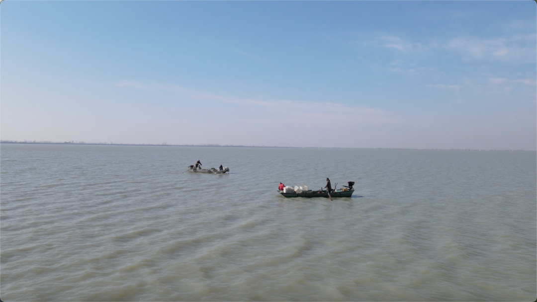 節(jié)氣到小寒,天地如被收進(jìn)澄澈冰琥珀,萬物在靜謐中更迭,雁陣掠過清冽長空,北歸序曲奏響,年節(jié)暖意漸濃。寒意輕裹的土地下,安豐塘清冽寬闊的懷抱里,涌動著蓬勃生機。隨著漁民渾厚吆喝,冬捕序幕在凜冽風(fēng)中拉開。