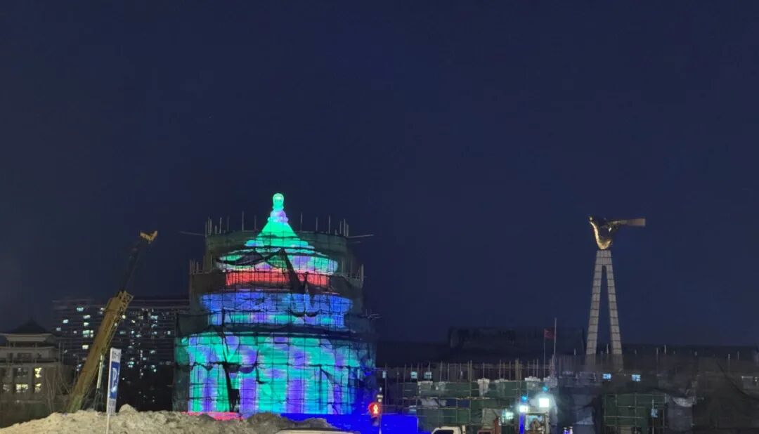 文化廣場(chǎng)上,高達(dá)20米的“盛世中華”冰雕是整條街的標(biāo)志性景觀。它以天壇為藍(lán)本,用冰近5700立方米,融入長(zhǎng)城元素與紅燈籠,展現(xiàn)中華盛世風(fēng)貌,傳遞對(duì)國(guó)家繁榮的美好祝愿,也彰顯對(duì)中華傳統(tǒng)文化的傳承與創(chuàng)新。