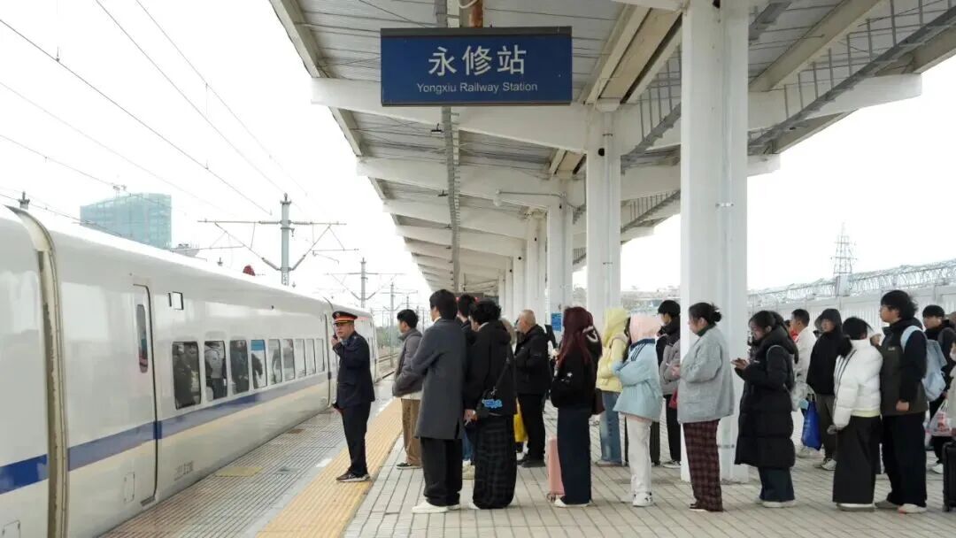 永修站歷史悠久,始建于1913年,前身為南潯鐵路涂家埠站;1996年京九鐵路通車后更名為永修站。如今,它已成為贛北重要交通樞紐,承擔京九鐵路、昌九城際鐵路旅客乘降,以及高鐵、動車、城際列車經(jīng)停等業(yè)務,年發(fā)送旅客量達100萬人次。