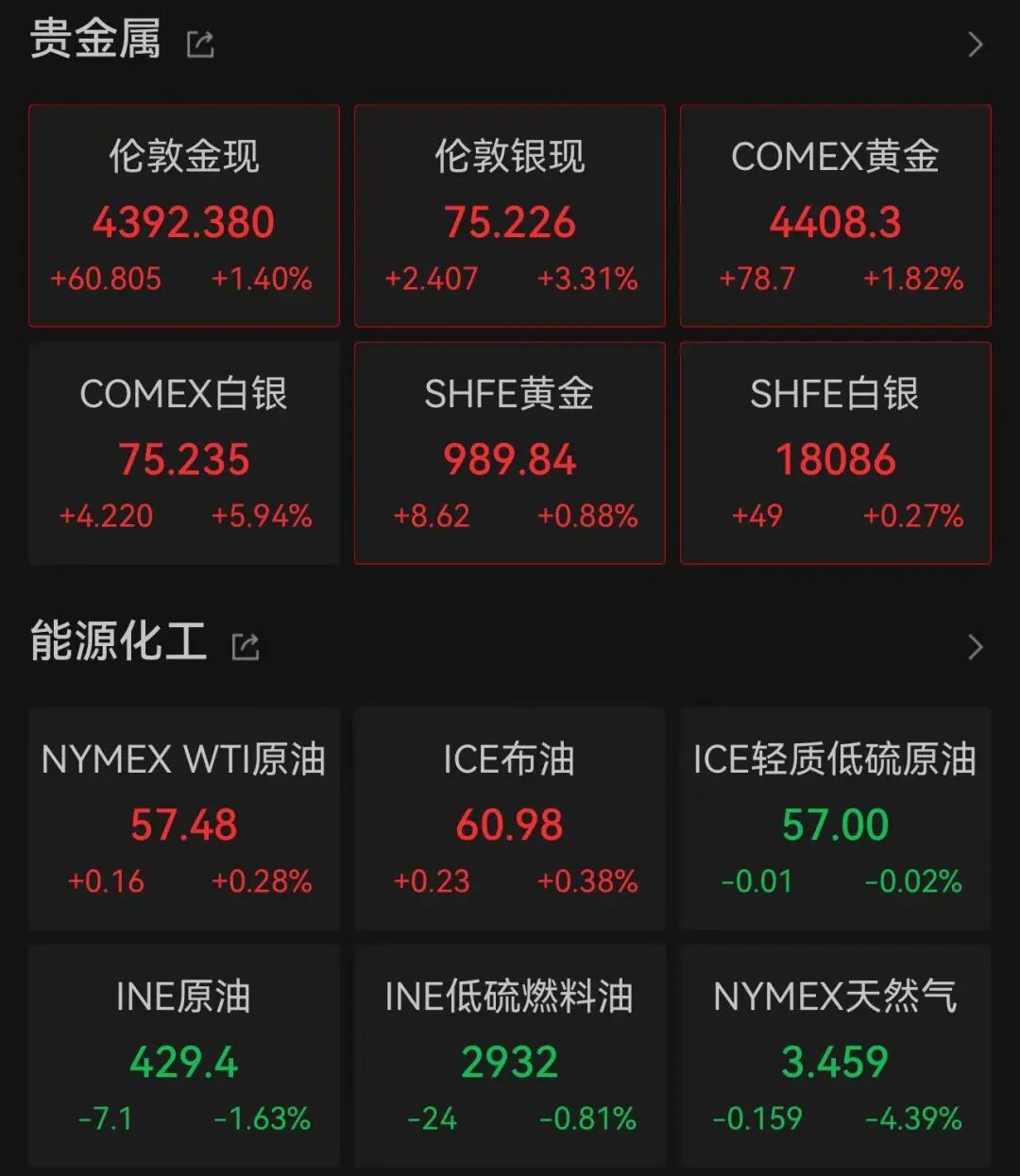其次是受地緣事件影響的貴金屬與油氣開采板塊。國(guó)際現(xiàn)貨黃金、現(xiàn)貨白銀在當(dāng)日上午盤中均出現(xiàn)大幅上漲,帶動(dòng)A股市場(chǎng)相關(guān)板塊走強(qiáng)。