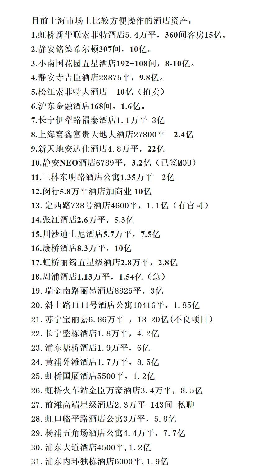 值得注意的是,這場(chǎng)價(jià)格“跳水”并非毫無(wú)預(yù)兆。早在去年4月,旅界曾獨(dú)家披露上海待售酒店清單,僅便于操作的資產(chǎn)就有31家。